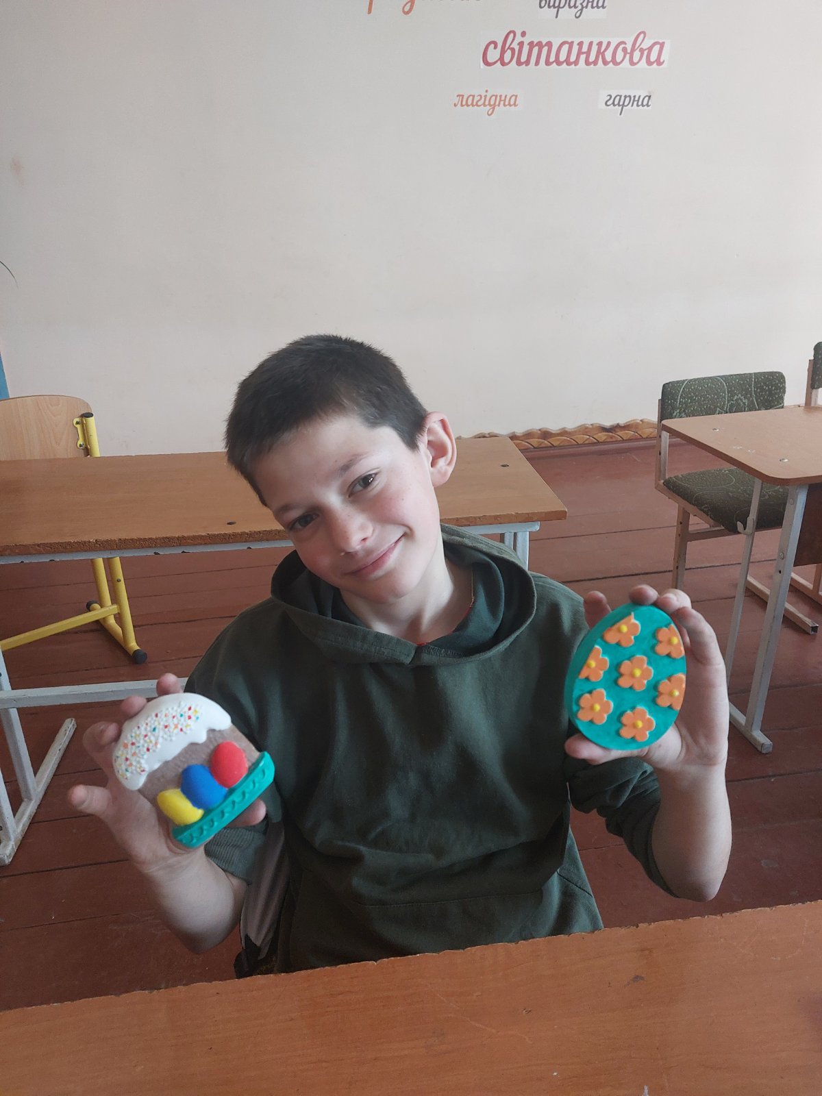 Свято Великодня багате на звичаї і традиції. Тому учні з особливими освітніми потребами Пляшевського ліцею долучилися до цих традицій та власноруч розмалювали магніти у вигляді пасочки і писанки. Учні з радістю підбирали кольори яскравих фарб і наносили їх на магніти. Владислав та Ілля були задоволені результатом своєї роботи.