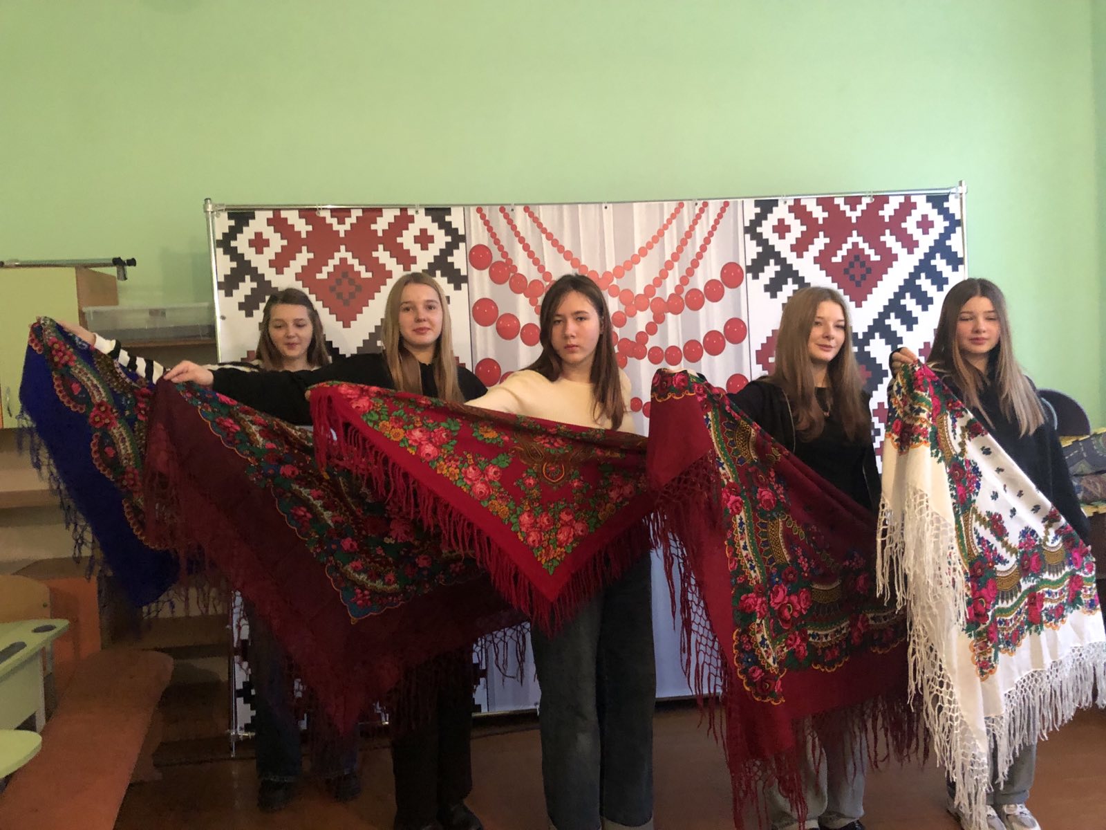 Сьогодні коридори школи розквітли справжнім різнобарв’ям. Дівчата та вчительки принесли свої найкращі хустки: квітчасті, яскраві, пастельні, з вишитими візерунками чи тонким орнаментом. Кожна — по-своєму унікальна, кожна має свій характер і свою маленьку історію.